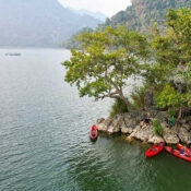 13:00 Sau thời gian nghỉ ngơi, trở lại hồ Ba Bể, thăm đền An Mạ và sau đó thực hiện một cuộc trekking ngắn qua rừng để đến bến thuyền. Nếu bạn vẫn còn năng lượng, bạn có thể tham gia tour chèo thuyền kayak.